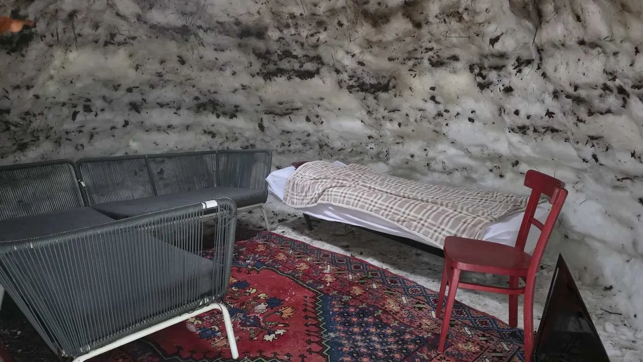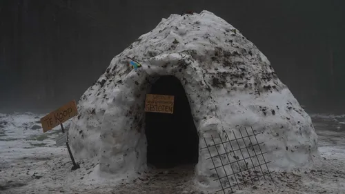 ASSEN - De afgelopen dagen is er tijdens de sneeuw een grote iglo gebouwd in het Amelterbos in Assen-Oost.