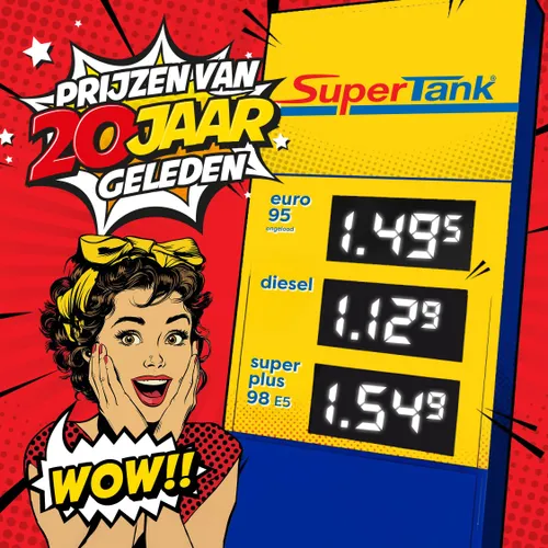EMMEN - Zondag 12 oktober wordt een moment voor in de boeken. SuperTank bestaat 20 jaar en draait daarom de pompprijzen gedurende 1 uur en 20 minuten terug in de tijd.